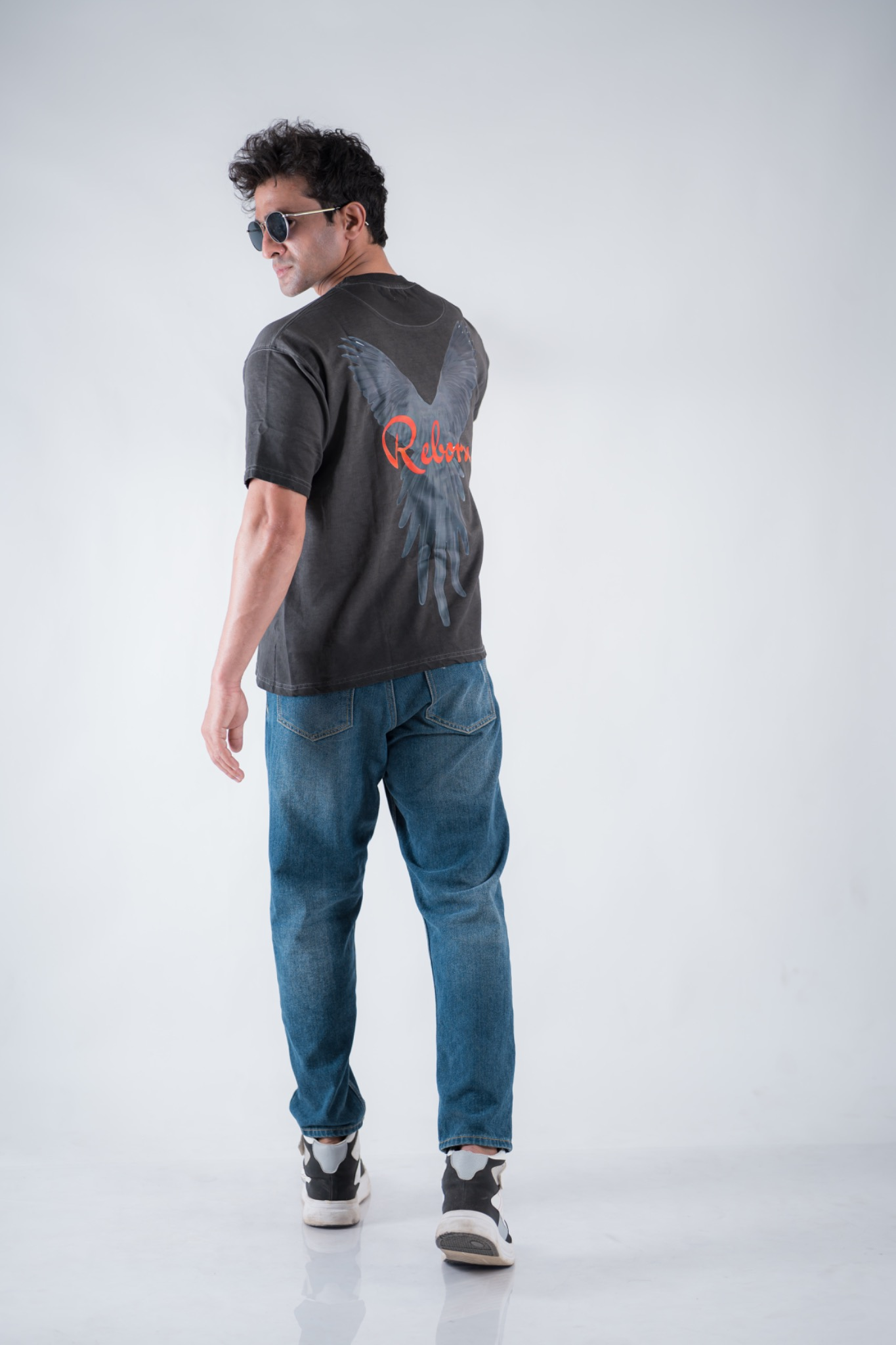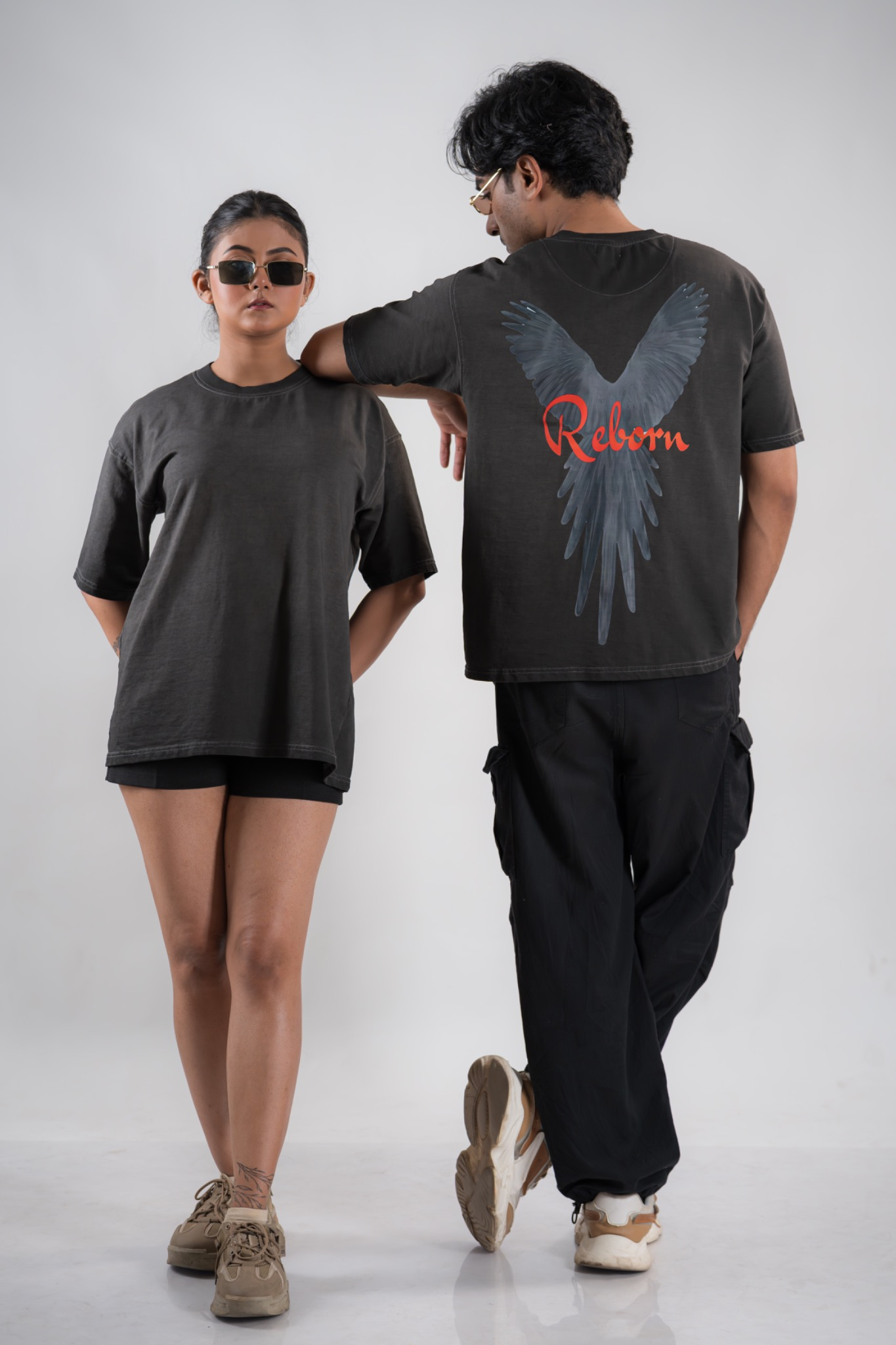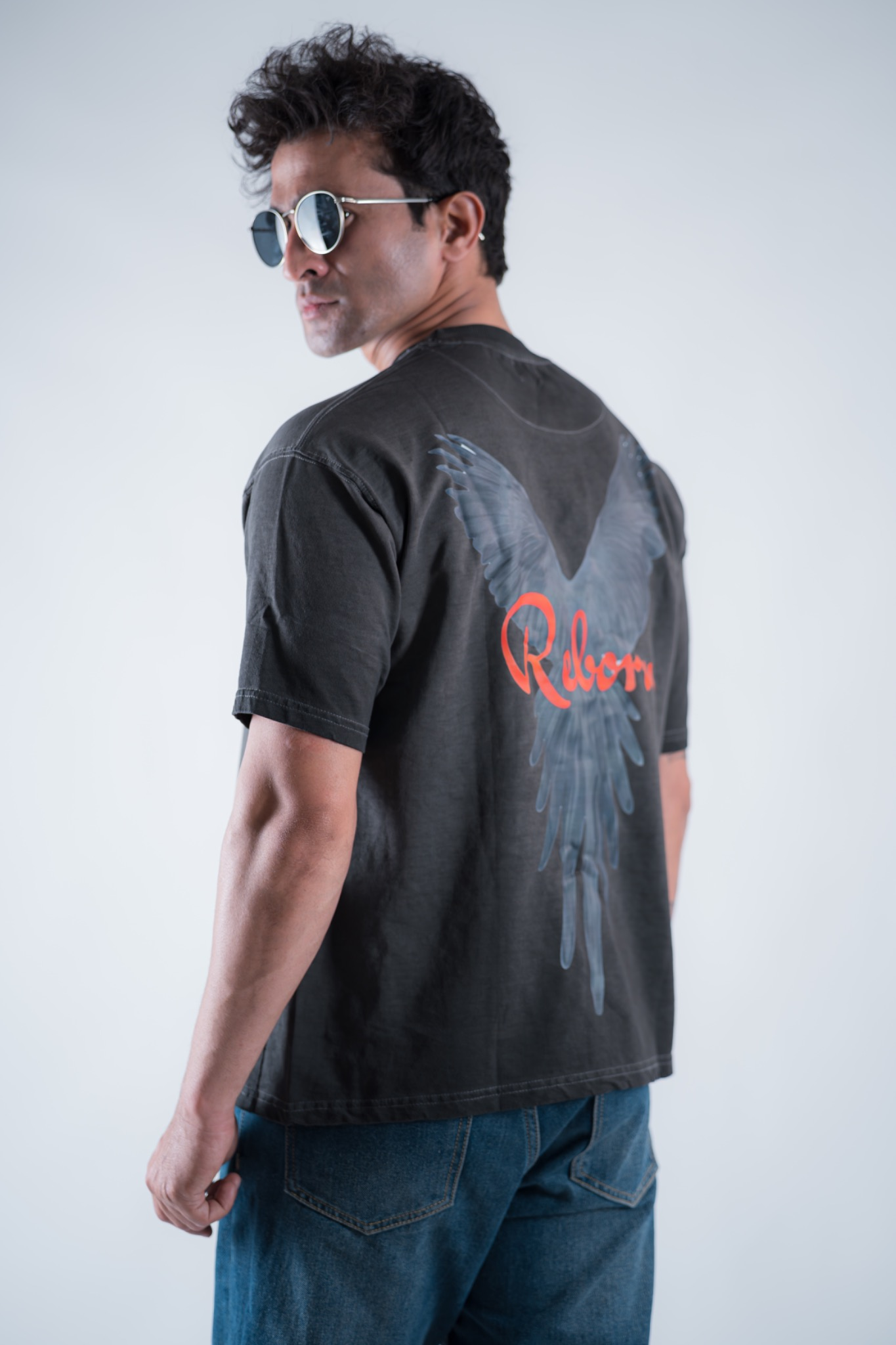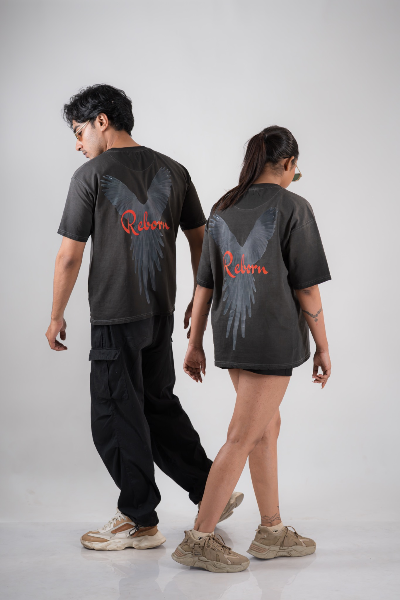 “Reborn is a love letter to comebacks. From the front it looks clean and understated, carrying only the signature mark at the chest. Turn around and the full truth appears: a pair of dark wings stretched wide, with ‘Reborn’ written across them in vivid red. This tee is made for anyone who has broken down, paused, or disappeared for a while and then decided to return on their own terms. Wear it as a subtle announcement that the old version of you is gone, and what’s here now is softer, stronger and in full flight again.”